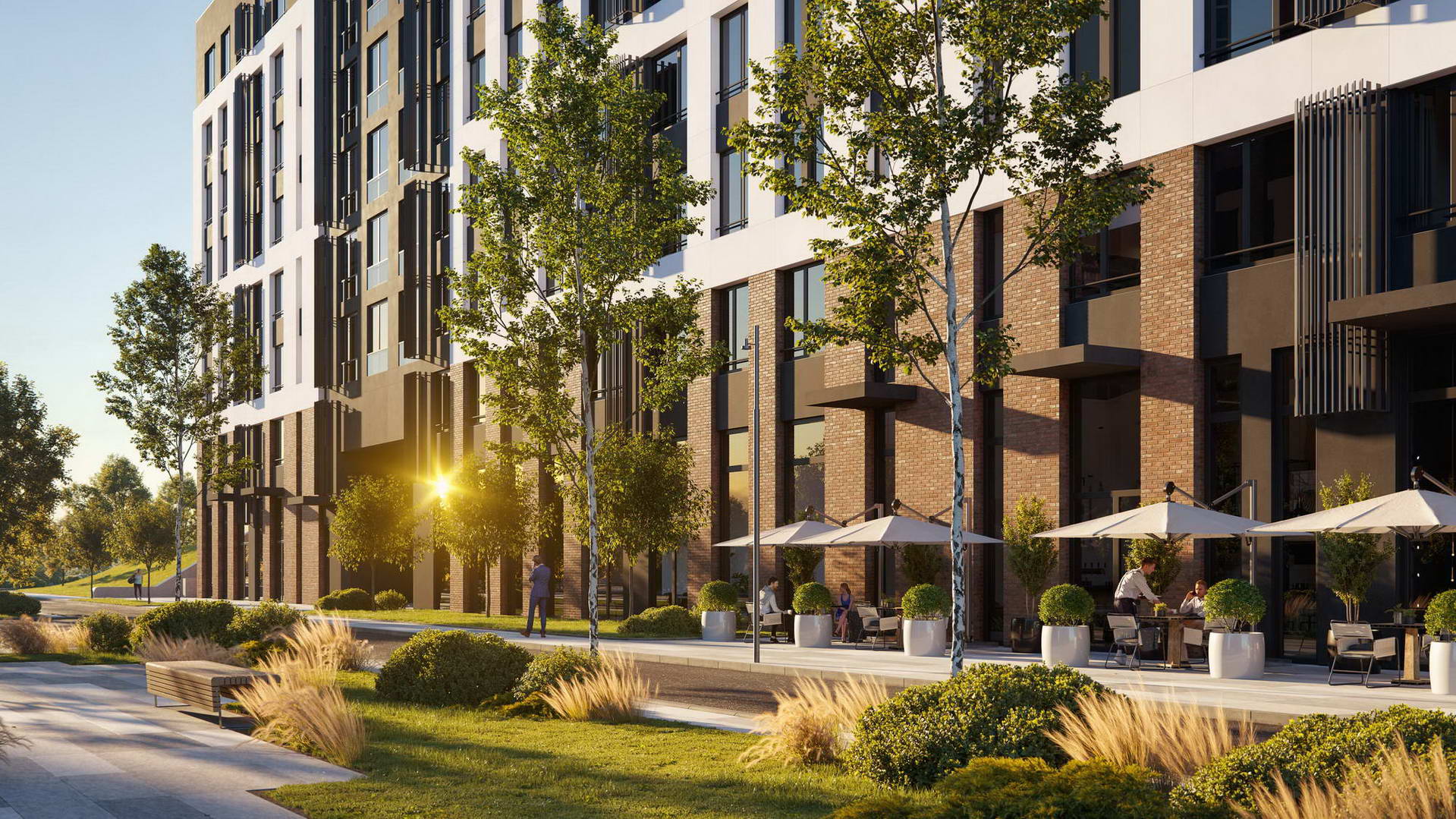 Двор без машин, 2,5 га центрального парка, ЖК окружен набережными, в пешей шаговой доступности 4 крупных парка. Весь проект пронизывает концепция экологичной среды.