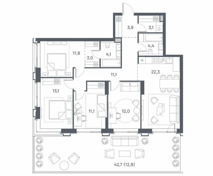 Инфраструктура комплекса продумана до мелочей. Вы сможете прогуливаться по собственной широкой набережной комплекса, отдохнуть в лобби с лаунж-зоной, провести время с семьей на детских и спортивных площадках.