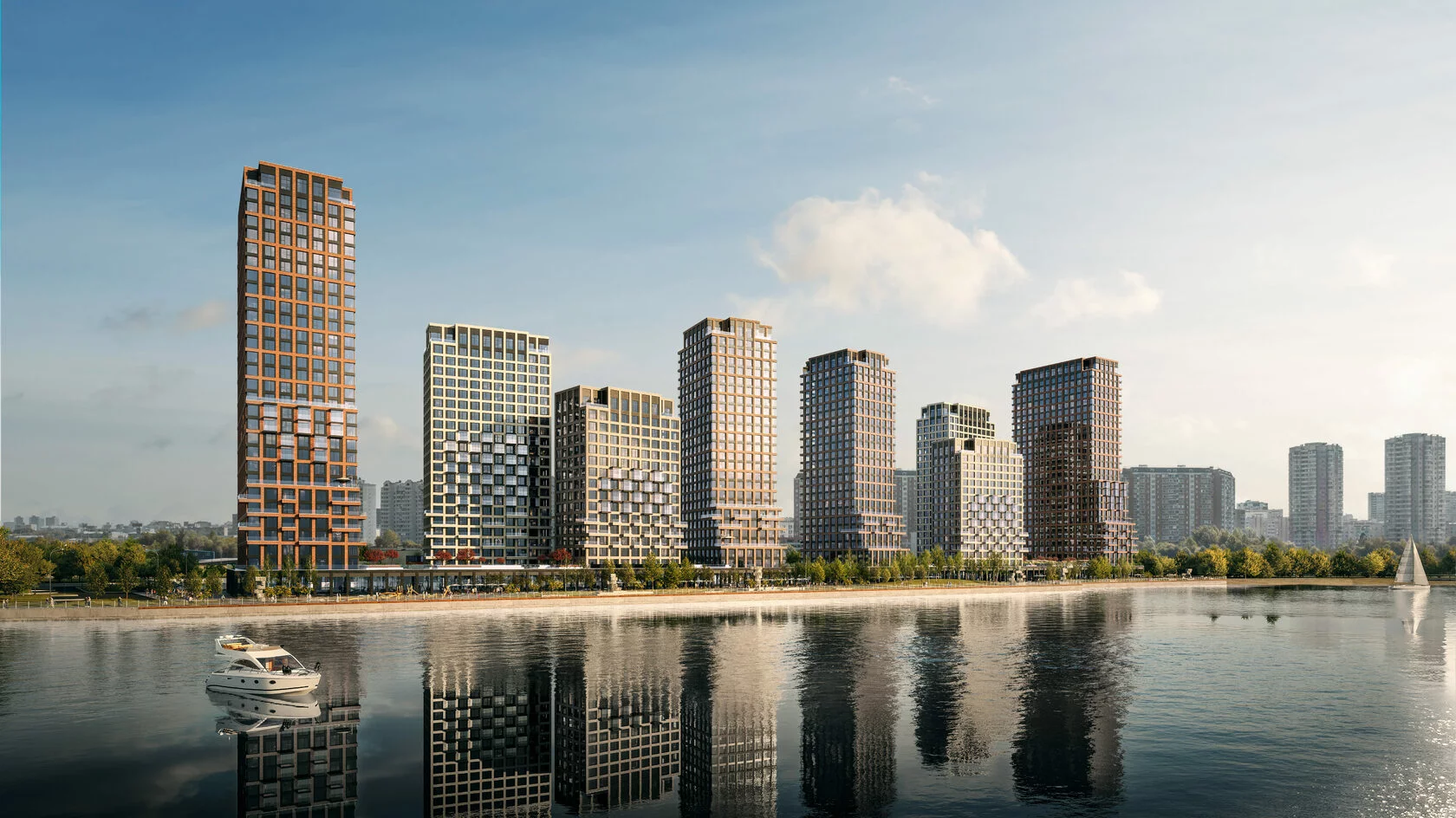 Архитектурный проект бизнес-класса, который расположится на берегу Москва-реки, территории Южного порта в районе Печатники. В комплексе запроектированы панорамные окна с видами на воду, большие террасы и роскошные пентхаусы на верхних этажах. Рядом появится утопающая в зелени набережная с десятками развлечений от сап-бордов и вейксерфинга до открытого понтонного бассейна.